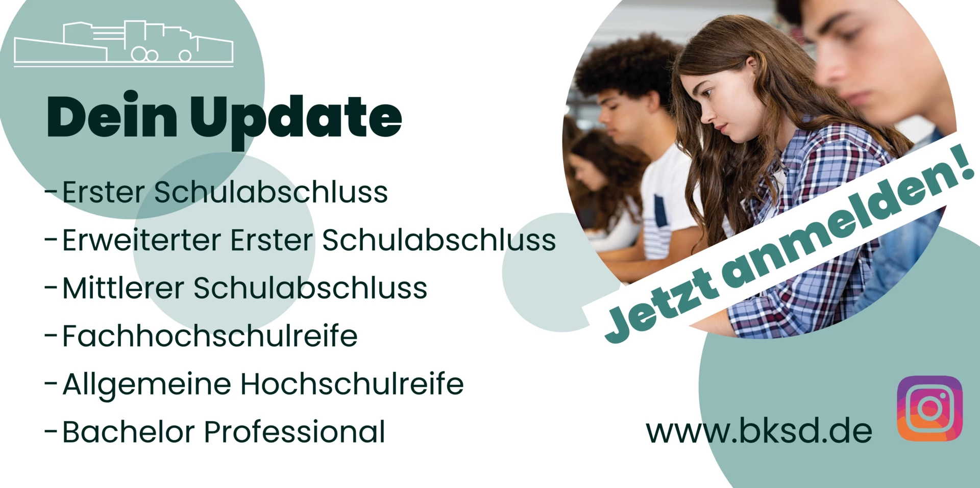 Vom Ersten Schulabschluss und dem Erweiterten Ersten Schulabschluss sowie dem Mittleren Schulabschluss und der Fachhochschulreife bis hin zur Allgemeinen Hochschulreife sowie verschiedene Berufsabschlüsse und im Rahmen der Weiterbildung zum Abschluss Bachelor Professional in Wirtschaft / staatlich geprüfte/r Betriebswirt/in haben wir alles im Angebot. Eine digitale sehr gut ausgestattete Lernumgebung, ein motiviertes Kollegium und viele berufsbezogene Fächer und Lernmittel helfen dir, deinen beruflichen Weg zu gehen. Überzeuge dich von deinen Chancen und stärke deine Talente!