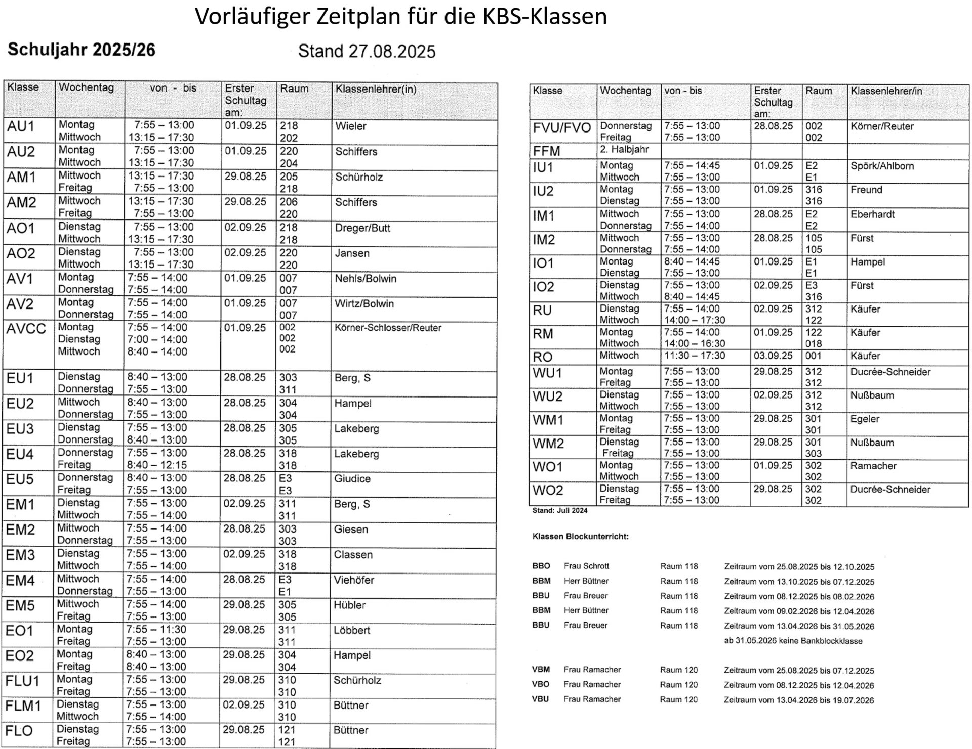 Den vorläufigen Zeitplan können Sie hier downloaden: KBS Zeitplan