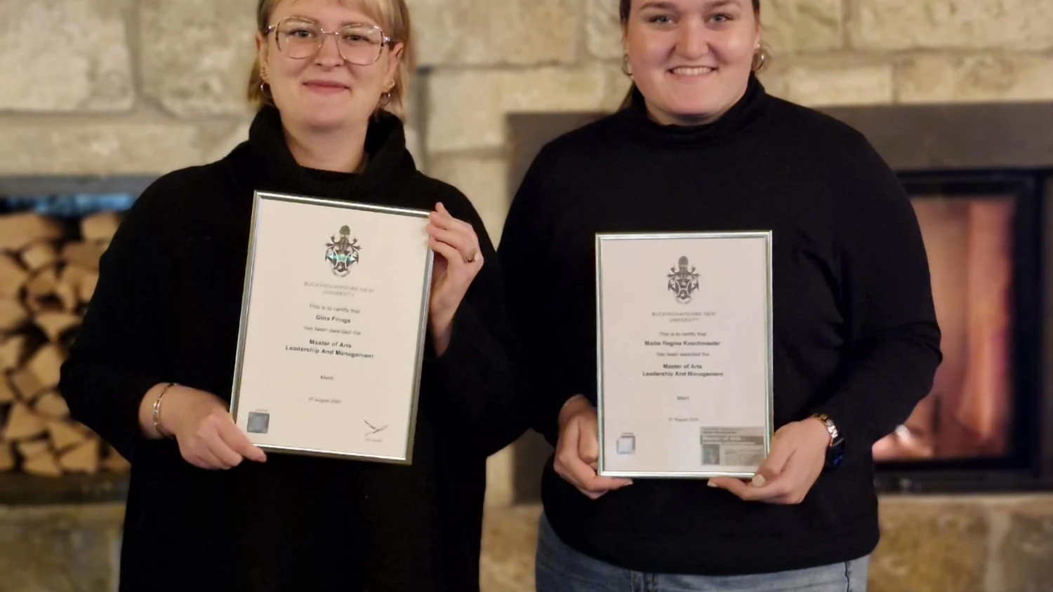Vor gar nicht langer Zeit haben wir berichtet, dass Maike Koschmieder und Gina Frings, die im Jahr 2023 bei uns ihren Bachelor Professional in Wirtschaft absolviert haben, ihre Masterarbeit an der Buckinghamshire New University (UK) / AFUM (Akademie für Unternehmensmanagement) eingereicht haben. Nun ist es geschafft! Die beiden Alumni unserer Fachschule für Wirtschaft halten Ihr Master-Zeugnis in Händen! Einmal im Fluss, entscheiden sich mittlerweile zahlreiche unserer Studierenden, ein berufsbegleitendes Masterstudium anzuschließen. Das freut uns umso mehr, zeigt es doch, dass wir zielgerichtet auf einem hohen Niveau ausbilden. Herzlichen Glückwunsch an Maika und Gina, ihr beide steht stellvertretend für alle, die mit Motivation und Durchhaltvermögen ihr Ziel erreichen, und weiterhin viel Erfolg an alle Ehemaligen für das laufende Studium!